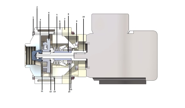 7a) Im Falle von MB 80/130 – TS Pumpen die mechanische Gleitringdichtung (5) zusammen mit dem Metallzylinder (8) und dem Siliziumring sowie dem zugehörigen O-Ring (14 und 15) herausziehen
