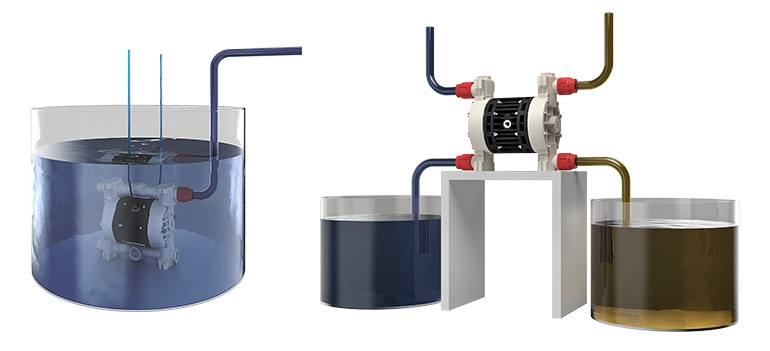 - Selbstansaugend: Doppelmembranpumpen sind in der Lage, trocken zu arbeiten und Flüssigkeit zu saugen, auch wenn die Pumpe nicht eingeführt ist.