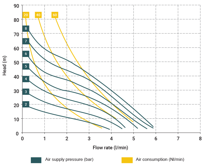 * The performance values refer to primed pumps (with water at 20°C) with open outlet and vary based on the construction materials