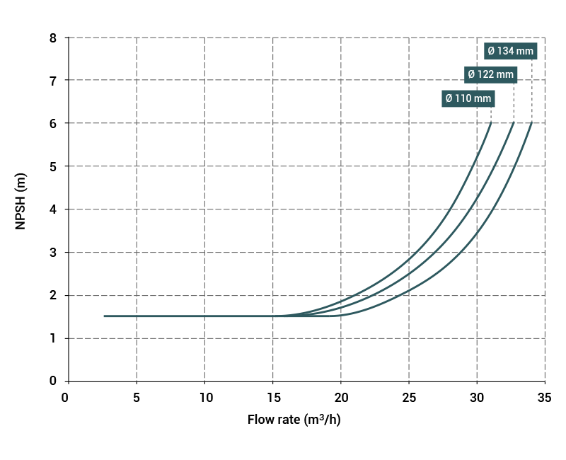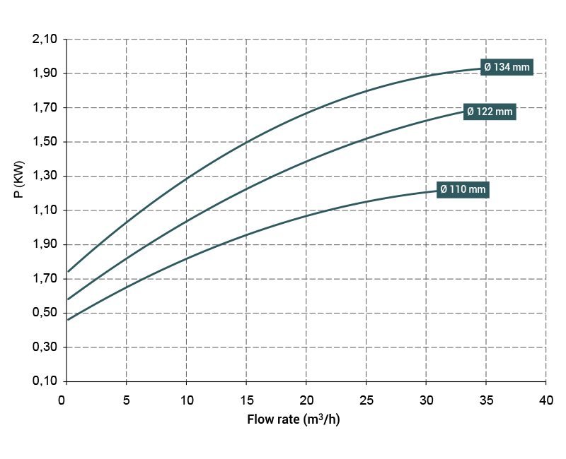 | IMPELLER | Motor 2,2 Kw (3 HP) | Motor 3 Kw (4 HP) | Motor 4 Kw (5,5 HP) |