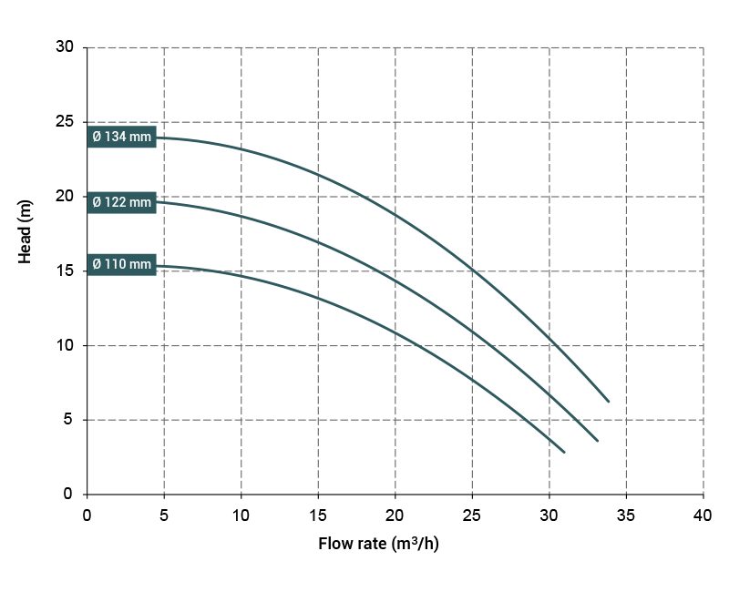 * The performance values refer to primed pumps (with water at 20°C) with open outlet and vary based on the construction materials.