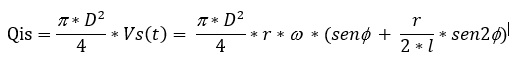 En effet, étant donné que sur les pompes à piston et les pompes à membrane l’organe mécanique responsable de la poussée présente un mouvement avec vitesse variable dans le temps (Vs(t)), il en sera de même pour le débit volumétrique instantané (Qis) élaboré par la pompe.