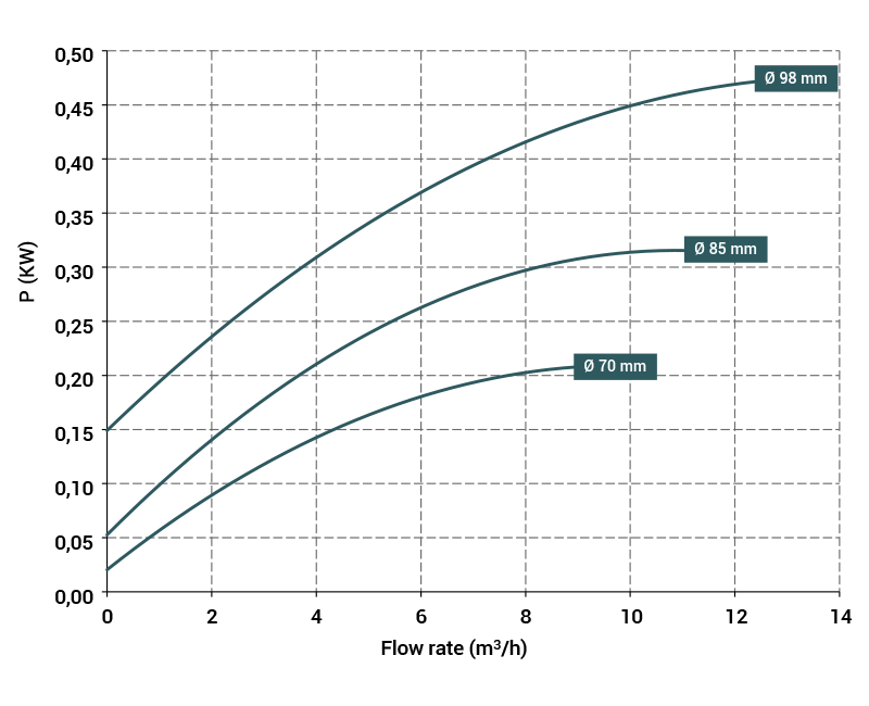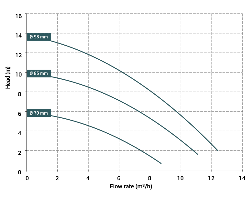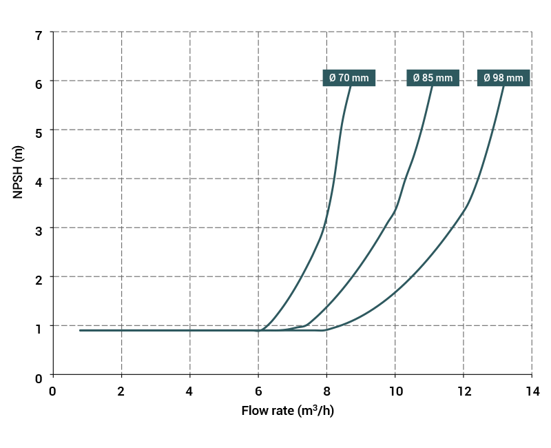 * Les performances indiquées se réfèrent aux pompes amorcées (avec fluide eau à 20 °C) en roue libre et varient en fonction des matériaux de composition.