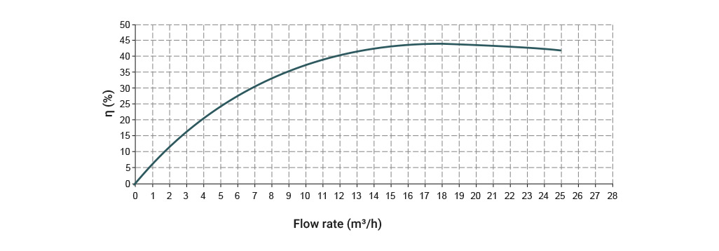 La curva è fondamentale per la selezione e il dimensionamento di una pompa in quanto evidenzia i punti di massimo rendimento e fornisce informazioni sull’effettiva capacità di soddisfare le esigenze del sistema applicativo all’interno del quale deve essere utilizzata.