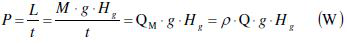 La potenza della pompa che si ottiene è espressa in watt (o in kilowatt, dove 1 kW = 1000 W). Se si vuole tenere conto delle varie perdite, è necessario dividere tale potenza per il rendimento totale.