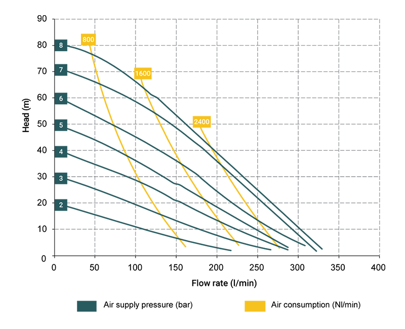* Le prestazioni indicate sono riferite a pompe adescate (con fluido acqua a 20°C) a prevalenza nulla e variano in funzione dei materiali di composizione.